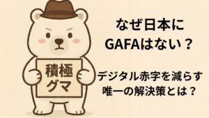 現在、日本は巨額の「デジタル赤字」を抱えています。これを解消するには、「日本にGAFAがない」と嘆くのをやめ、デジタル保護主義に舵を切るべきです。海外製サービスを徐々に排除し、国内市場を日本企業に開放すれば、上述のネットワーク効果が働き、たとえ最初は「GAFAのミニチュア版」であっても、日本独自のプラットフォームが必ず育ちます。